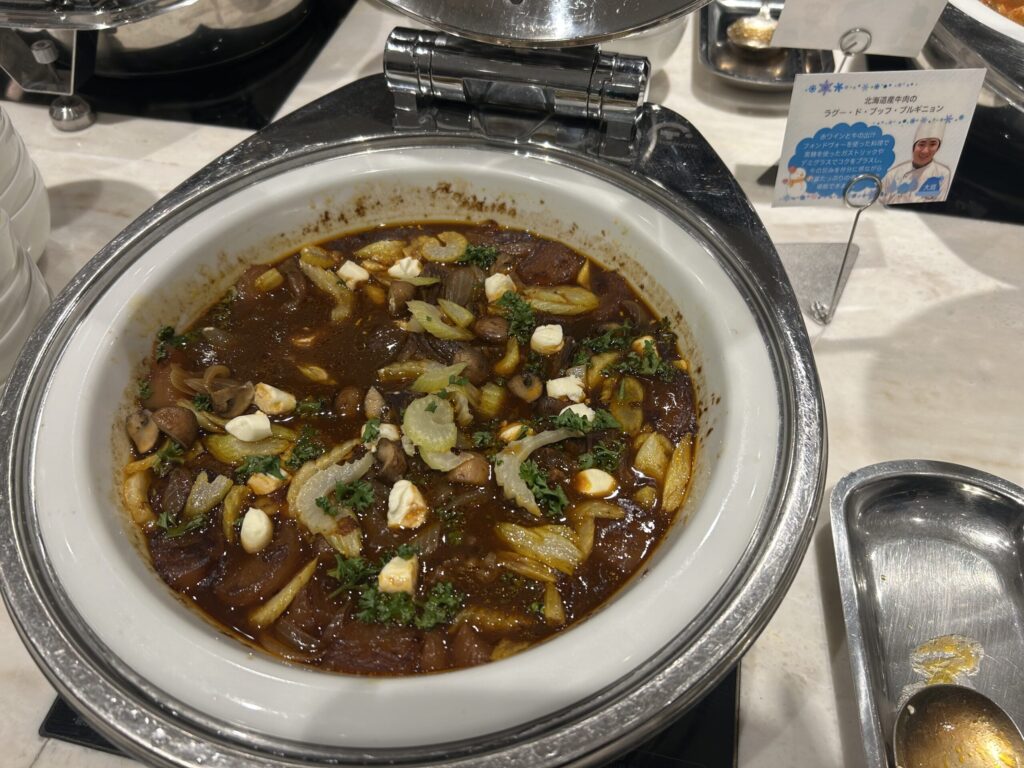 料理の中では、北海道十勝産牛ロースのステーキ(ガーリックフォレスティエールソース)、「とうや湖和牛」のハッシュドビーフクリーミーボロネーズ、十勝産モールウォッシュのラクレットチーズとズワイ蟹のグラタンが特に印象に残りました。