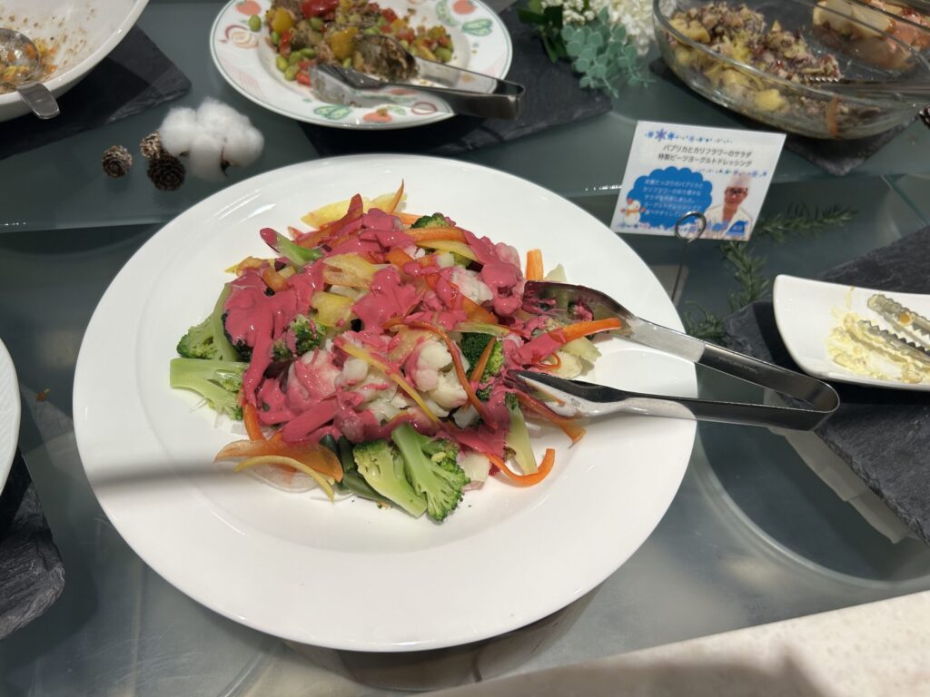 - パプリカとカリフラワーのサラダ 特製ビーツヨーグルトドレッシング