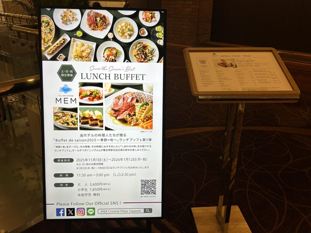 ANAクラウンプラザホテル札幌『ALL DAY DINING MEM(オールデイダイニング メム)』ランチブッフェ【2025年12月】