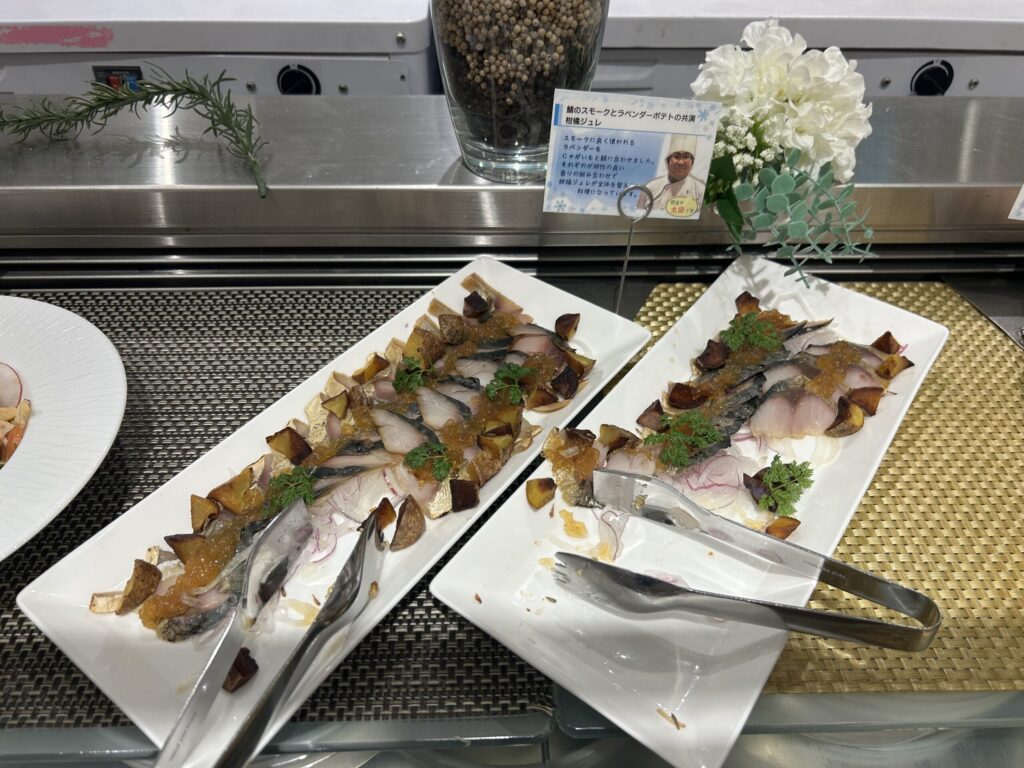• 鯖のスモークとラベンダーポテトの共演 柑橘ジュレ