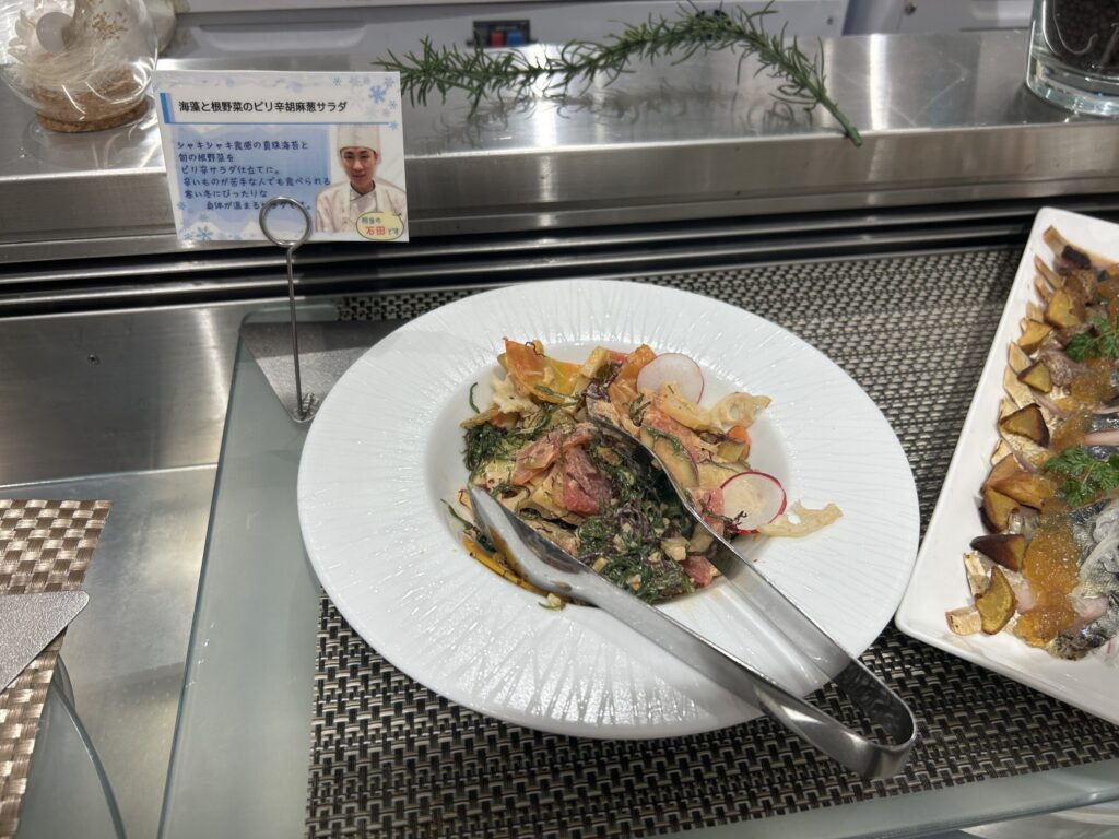 • 海藻と根野菜のピリ辛胡麻葱サラダ