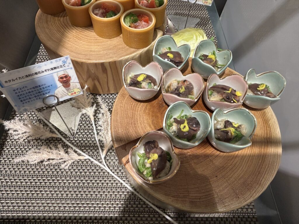 • ホタルイカと浅利の菊花みぞれ 塩麹仕立て