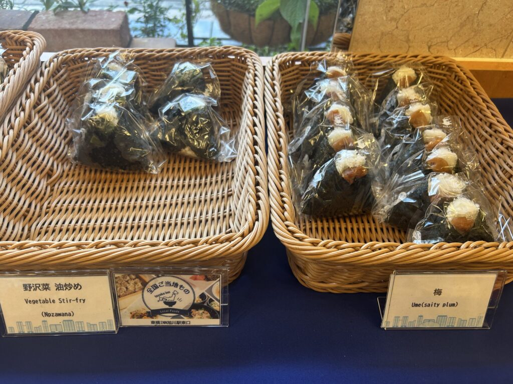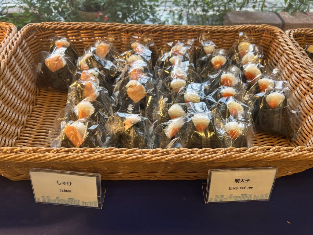 朝はスタッフの方が作ってくれるできたてのおにぎりが8種類もあり、日替わりで具材が楽しめます。