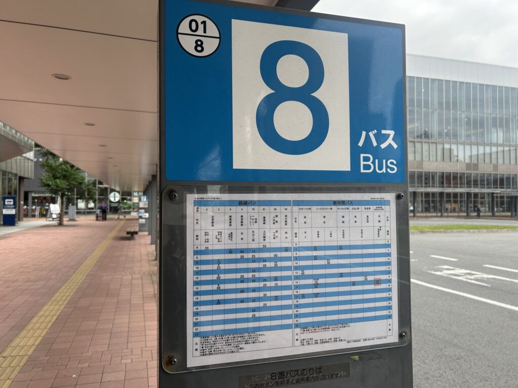 会場まで行きは旭川駅8番乗り場からバスで愛別駅前行きまたは名寄駅前行きに乗り、約50分。