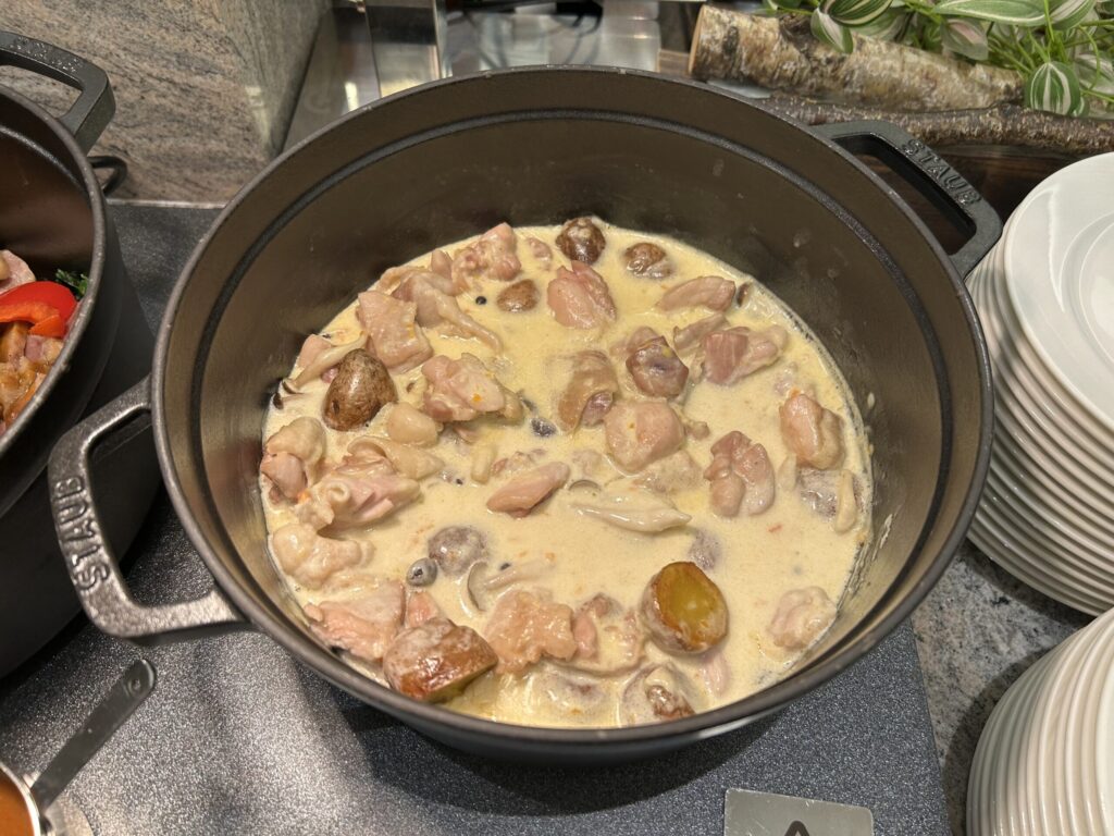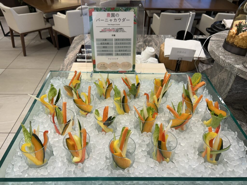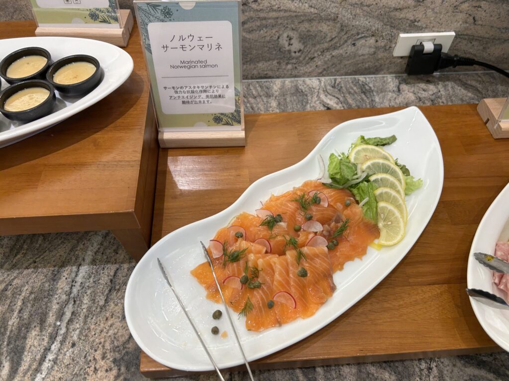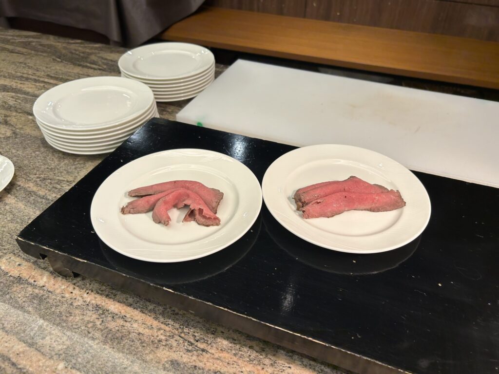 こちらのレストランは、以前はメイン料理+ハーフブッフェ形式だったようですが、2025年9月にリニューアルし現在土日はフルブッフェスタイルになっています。