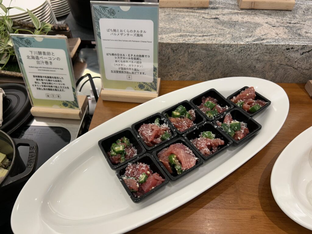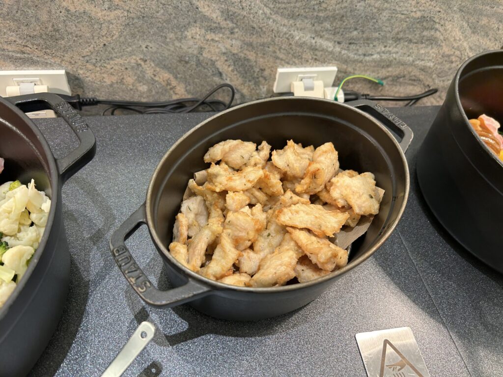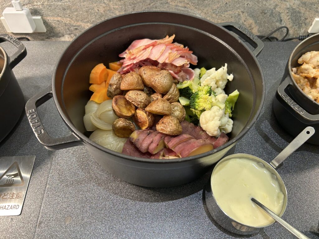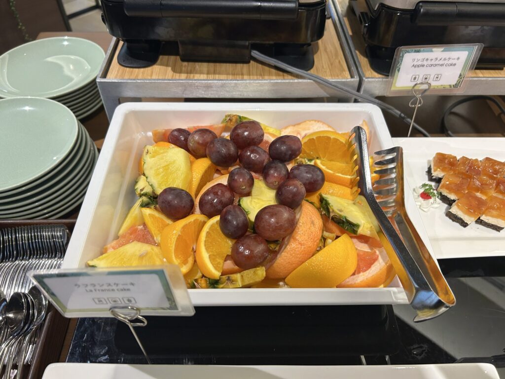 こちらのレストランは、以前はメイン料理+ハーフブッフェ形式だったようですが、2025年9月にリニューアルし現在土日はフルブッフェスタイルになっています。