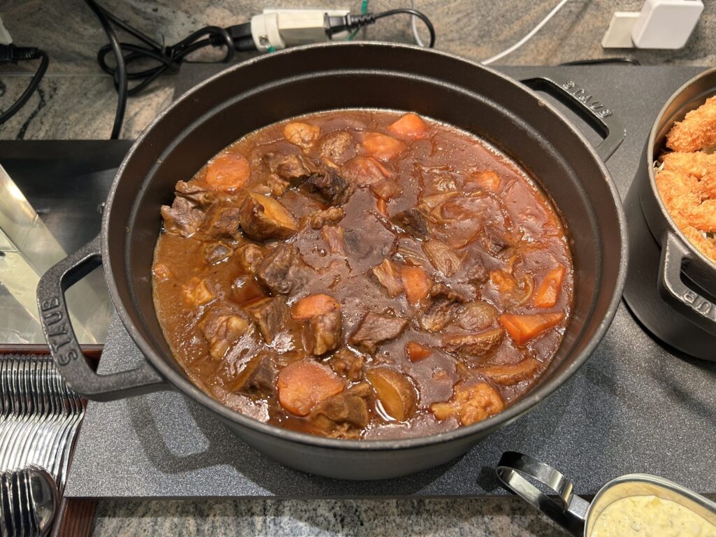 料理の中では、ローストビーフとビーフシチュー、クロワッサンワッフルが特に美味しかったです。