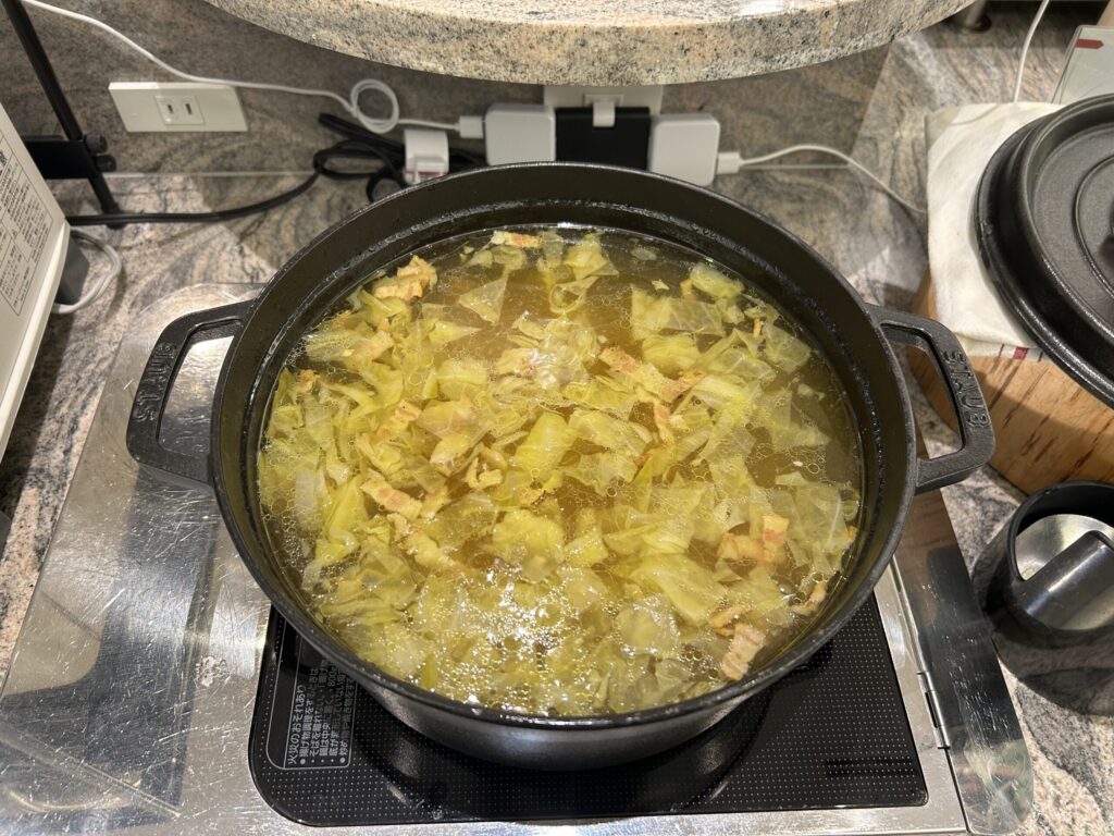 - ベーコンと野菜のチキンコンソメスープ