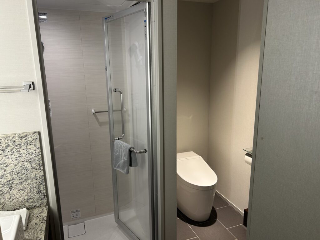 客室にはシャワーブースしかありませんでしたが、大浴場があるので問題ありません。