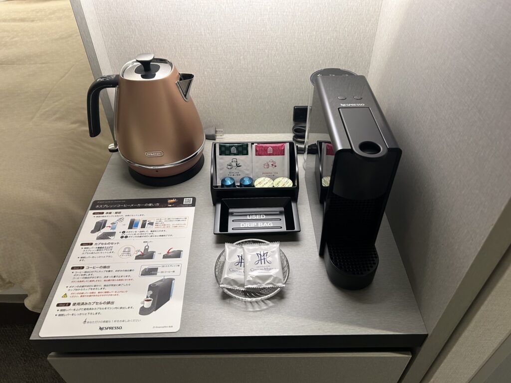 スタンダードなお部屋ですが、ネスプレッソやお着き菓子がありました。