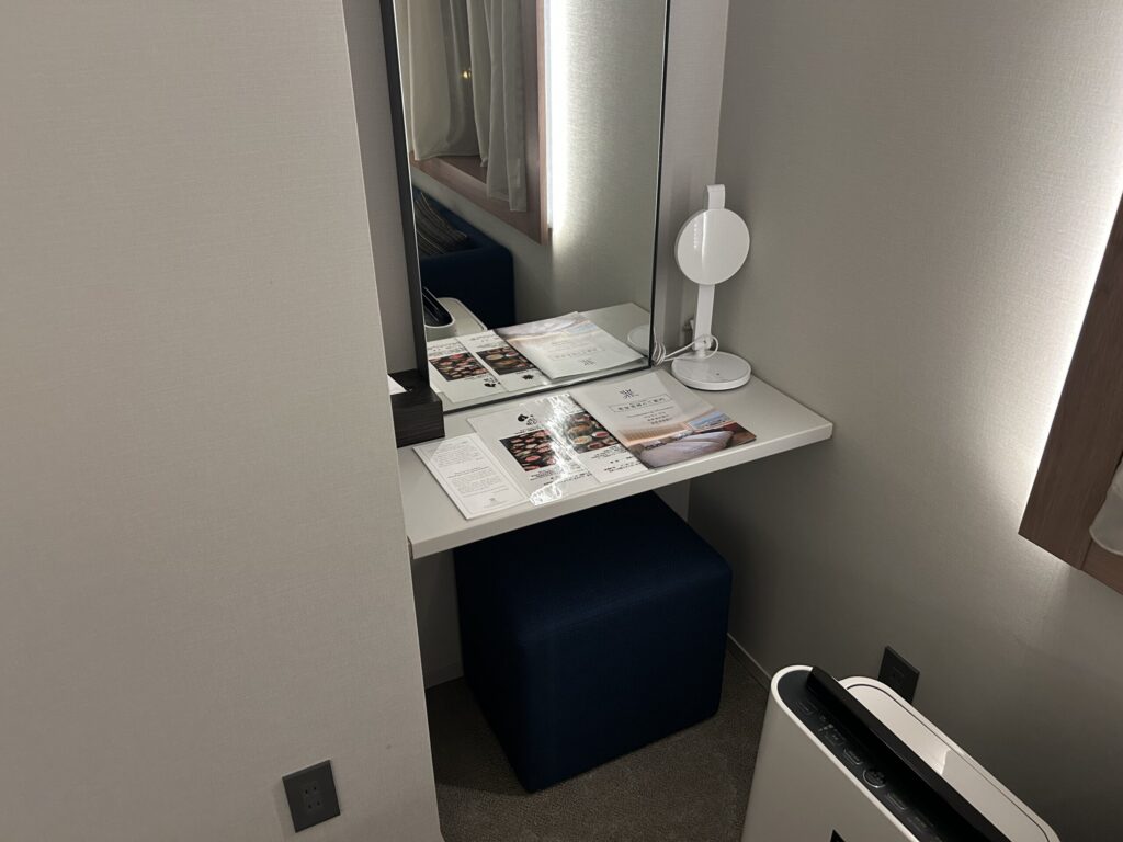 空気清浄機のおかげで窮屈ですが、ドレッサースペースもありました。