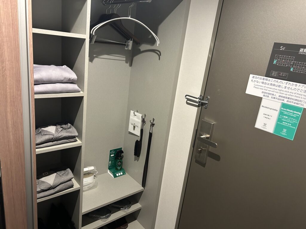 客室には室内着と館内着があり、館内着とスリッパで館内利用できました。