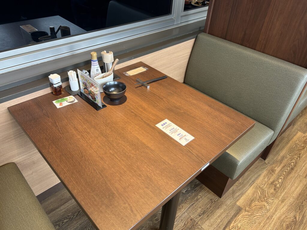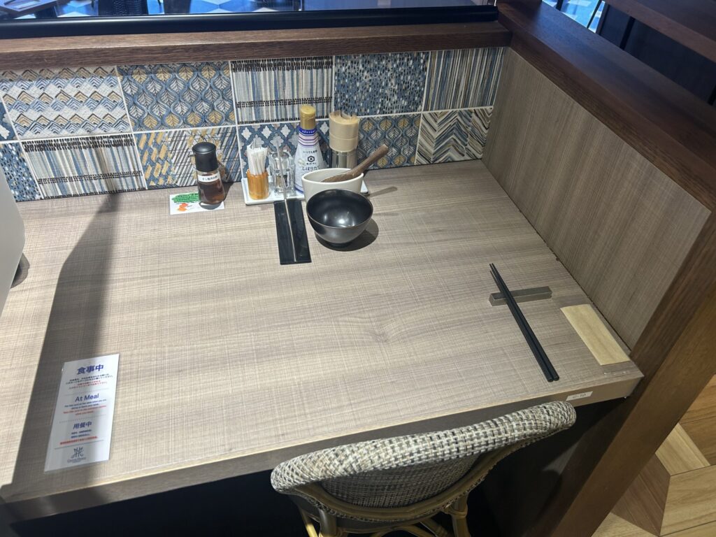 1日目は2人用席に案内していただけました。