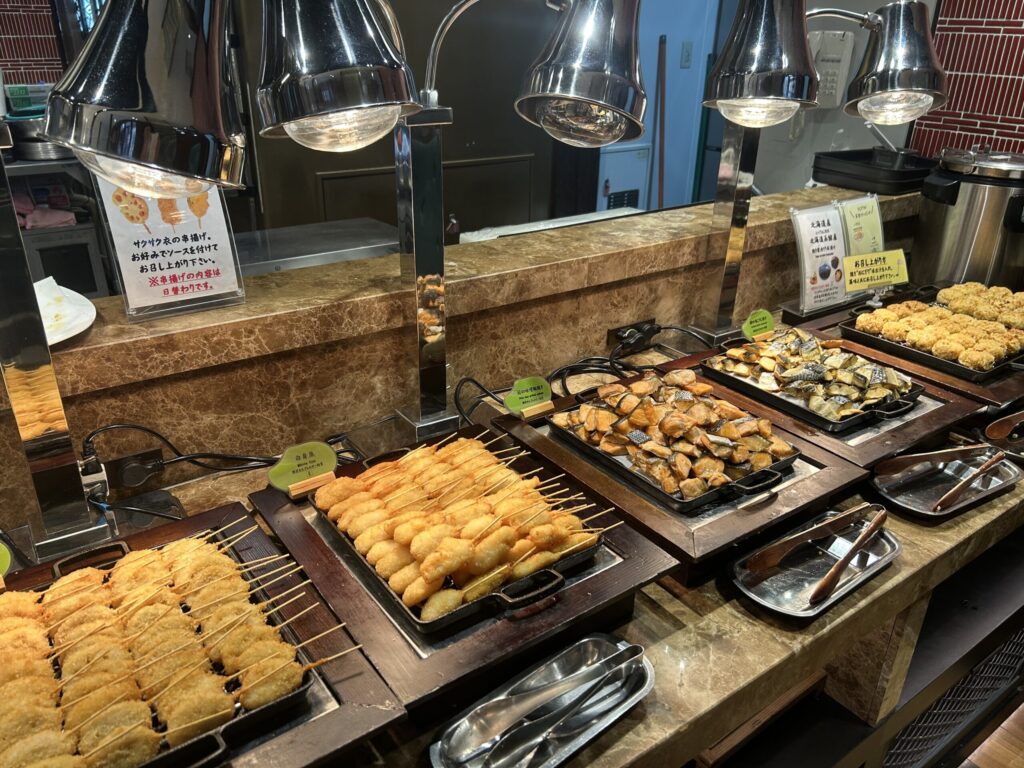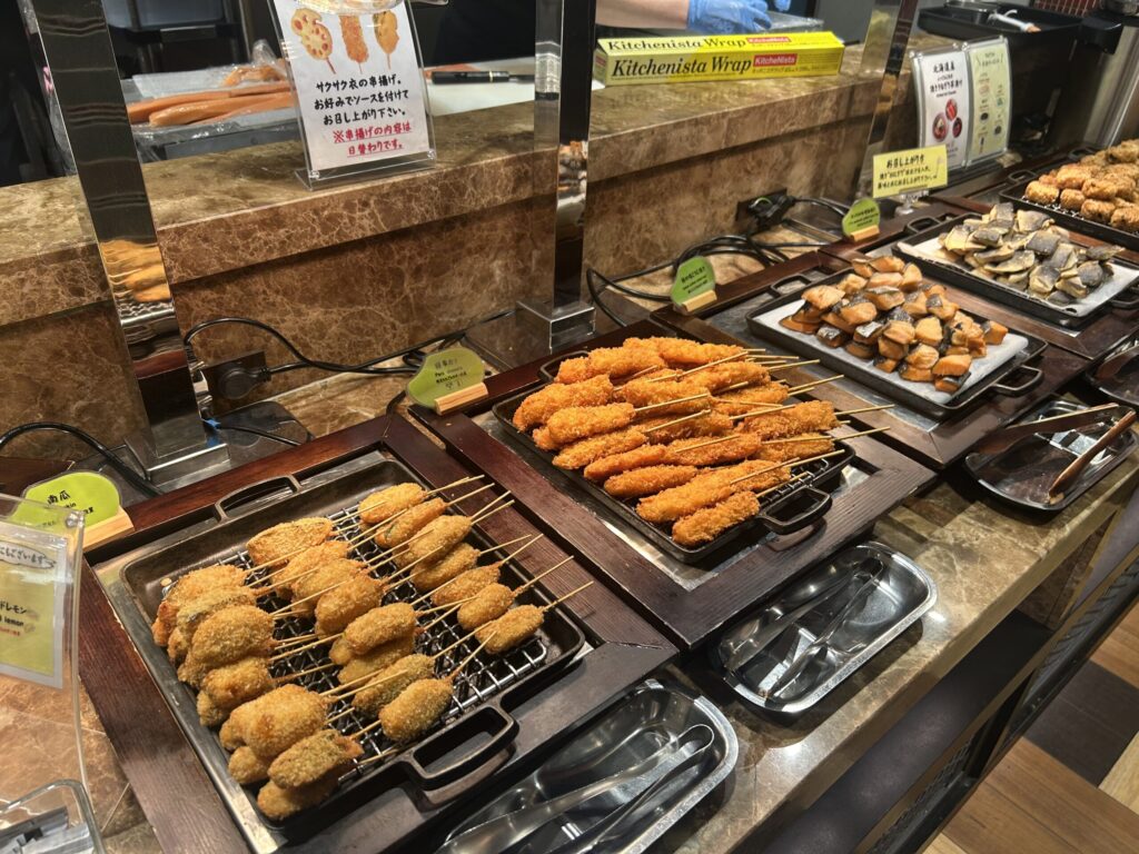 串揚げも日替わりで、1日目はレンコンと白身魚。