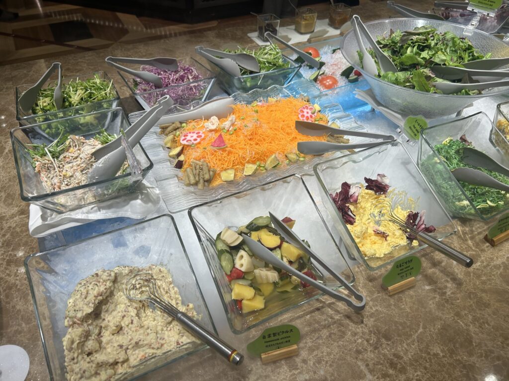 カット野菜だけではなく、こんなにサラダの種類が豊富なホテルは初めてです。
