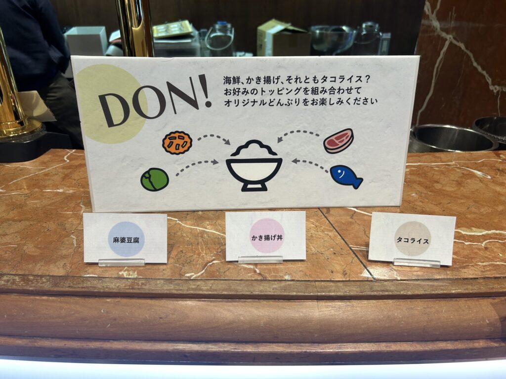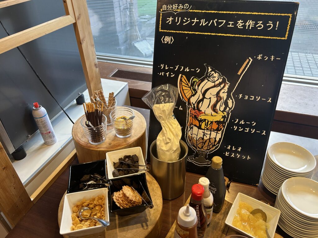 自分で作れる丼・ハンバーガー・パフェがあり、子供から大人まで楽しめる工夫あり。