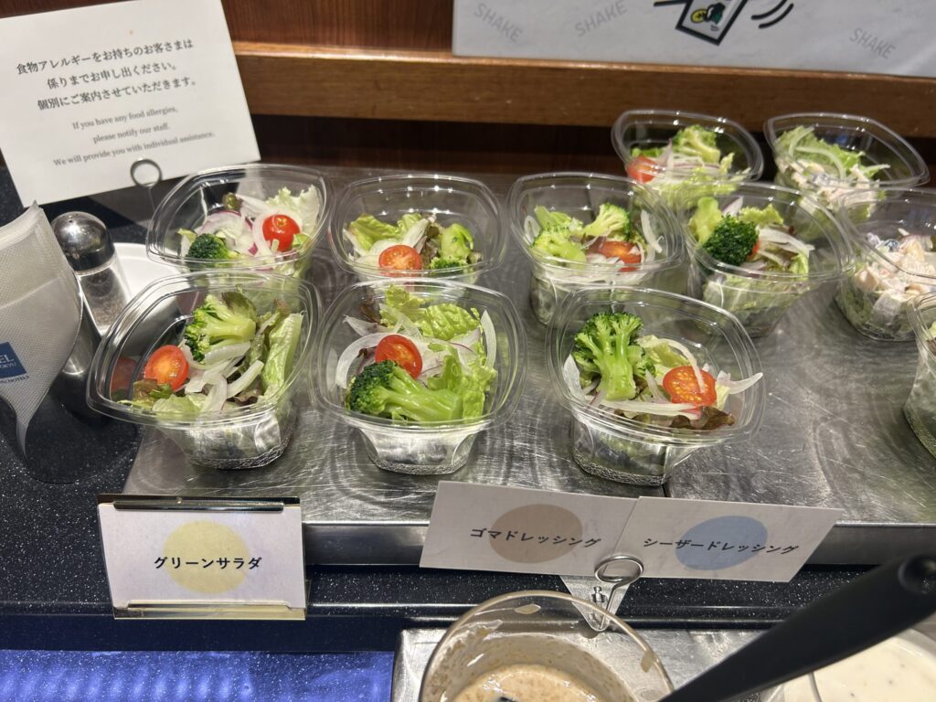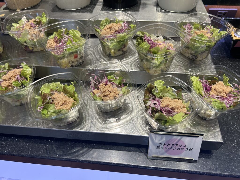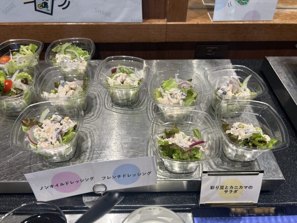 それとは逆に、食べやすい量に盛り付けてある色鮮やかなカップサラダ。