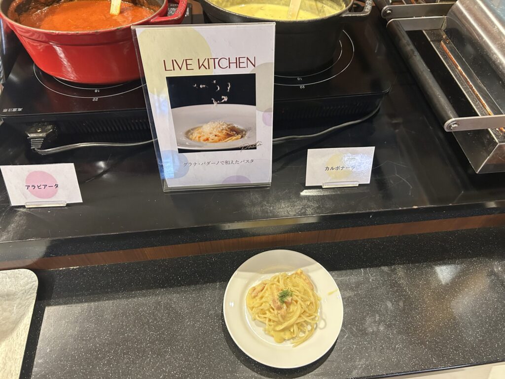 以前からあったステーキに加え、ハンバーグやパスタが実演メニューに追加。