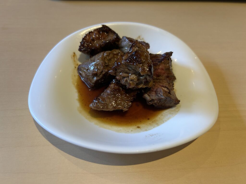 2回目はステーキだけでとお願いしたら、こんなに盛り付けてくださりました。