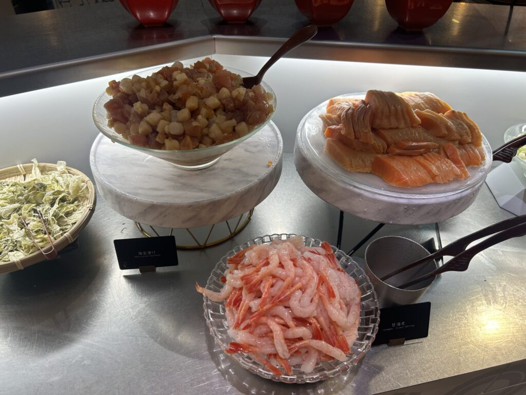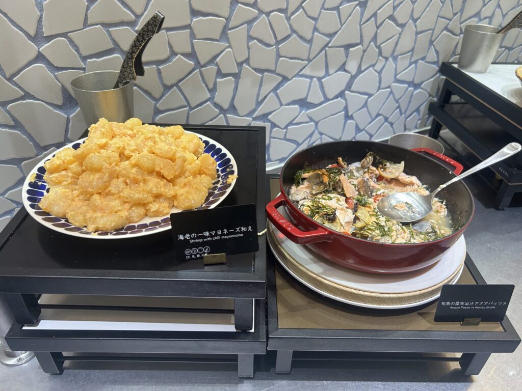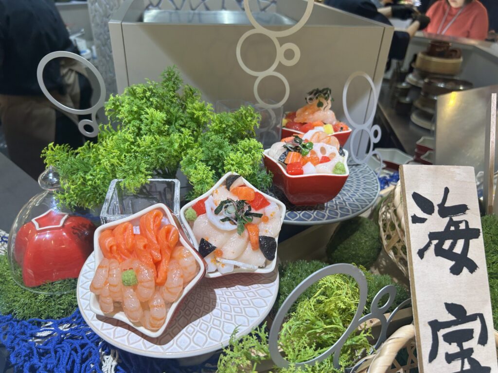 中央のビュッフェ台は五稜郭をイメージしたライブキッチンがあり、海鮮ファイブスターズと称した5つのメニューが提供されていました。