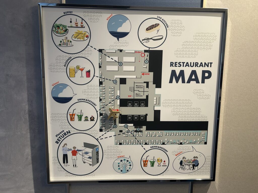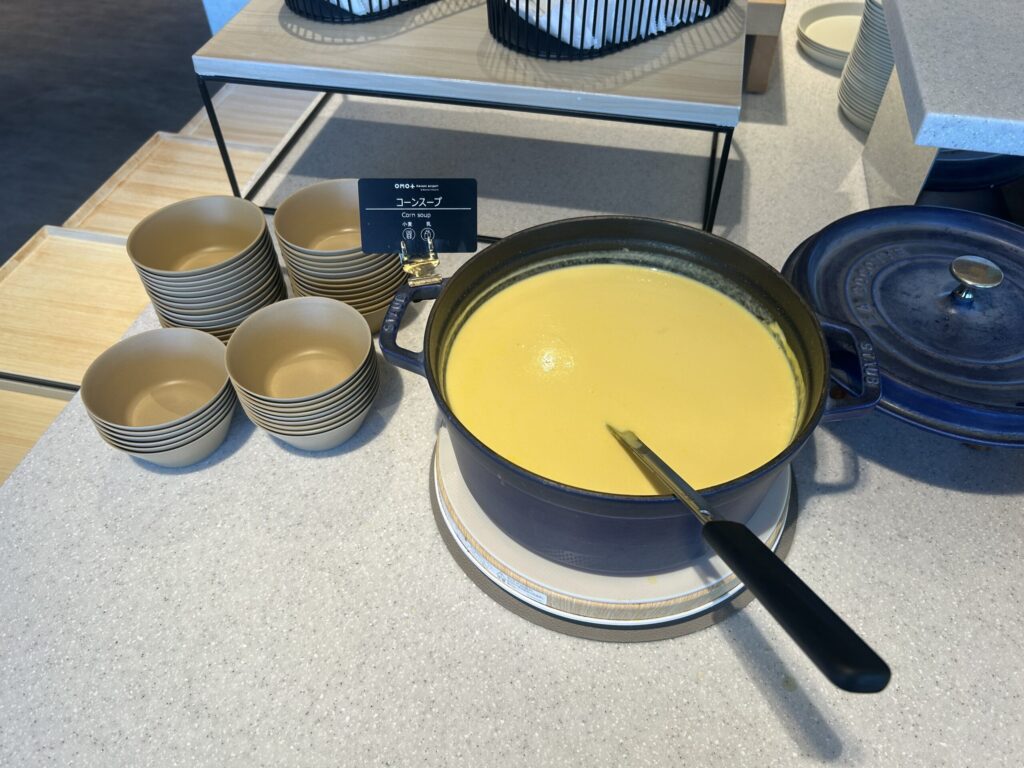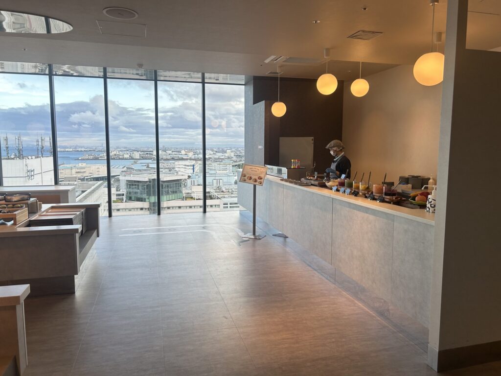 翌朝は、ホテル最上階・21階の「OMOダイニング」で朝食をいただきました。