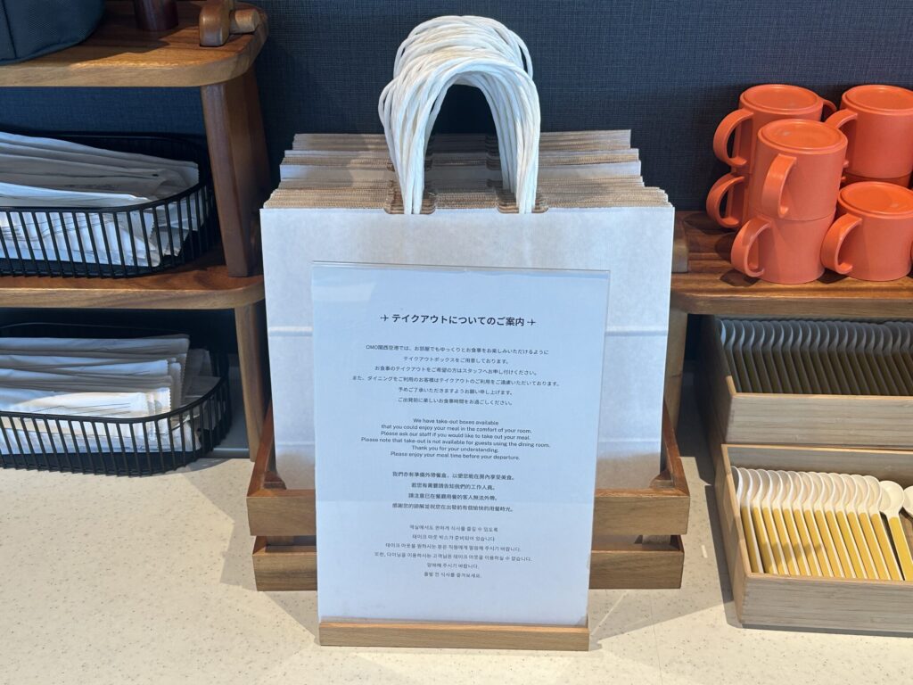 お部屋でゆっくり食べたい人はテイクアウトもできるようですが、眺めのいいレストランでいただくのがおすすめです。