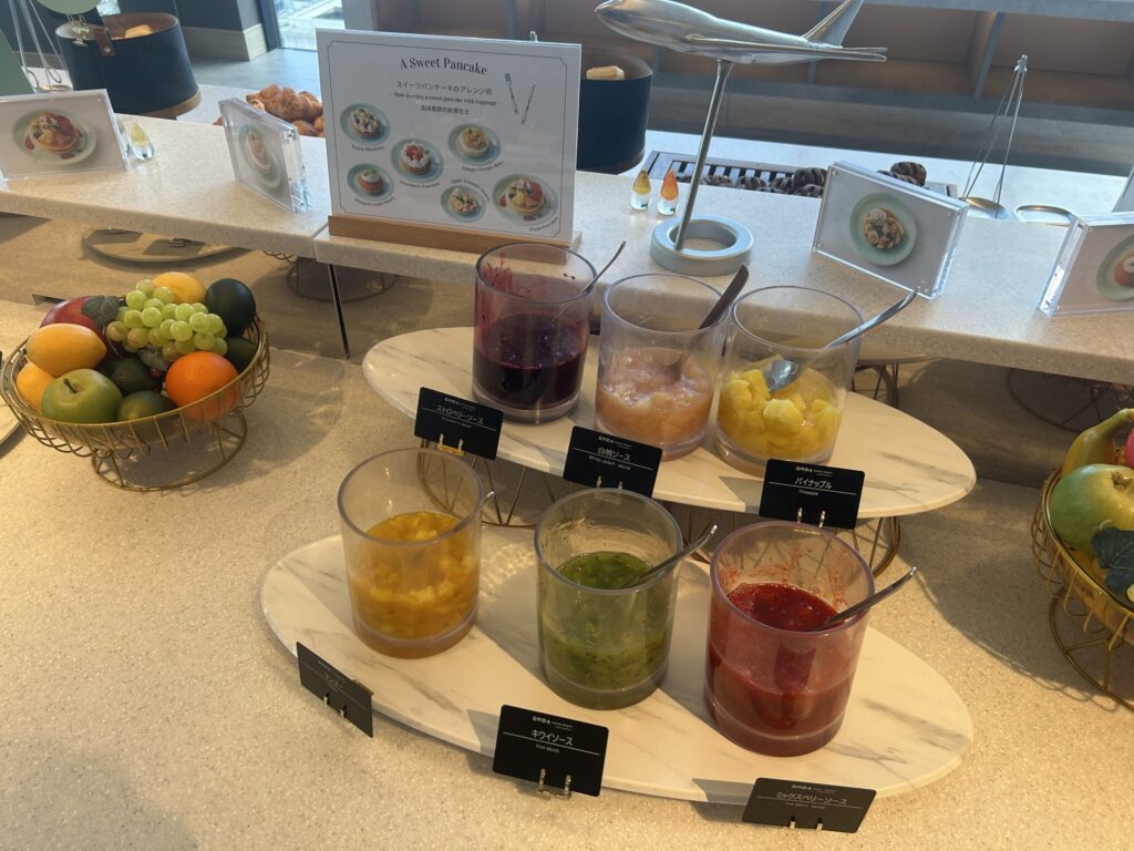 ビュッフェには、洋食・和食・サラダ・パン・デザートまで揃っていて、ライブキッチンのパンケーキが特に美味しかったです。