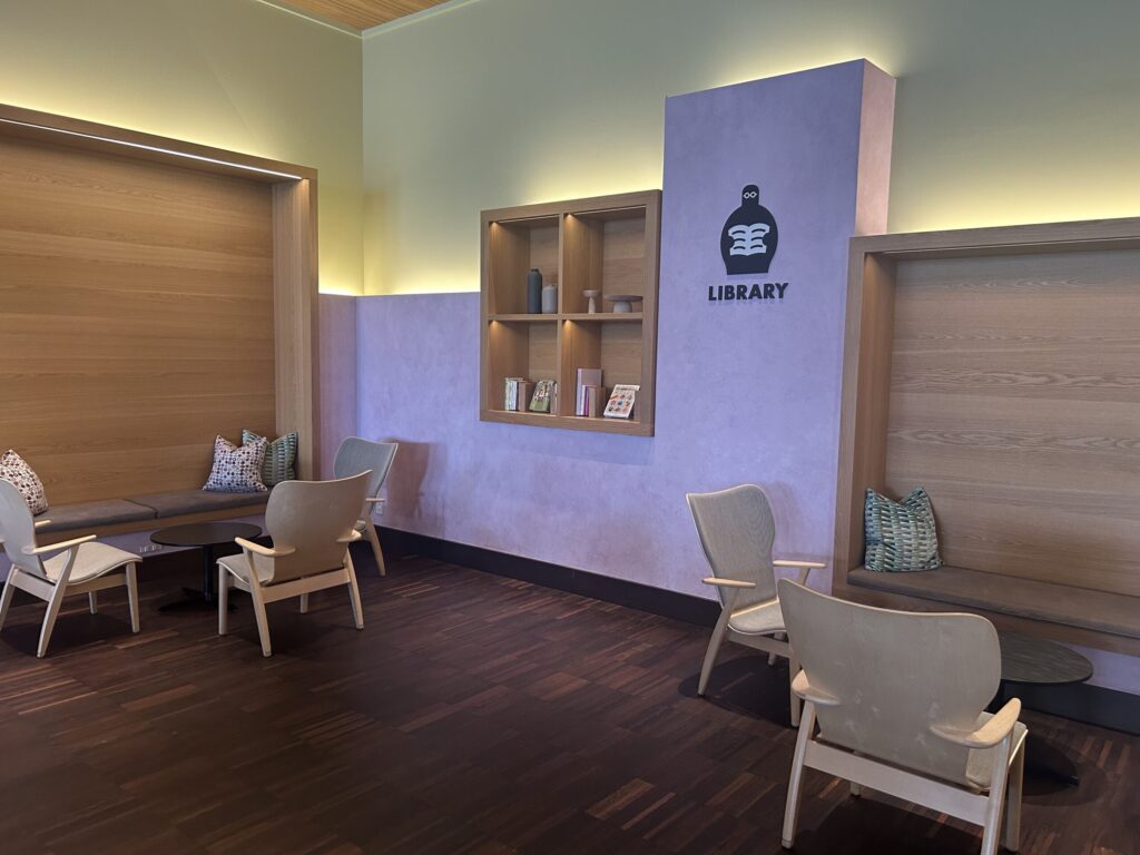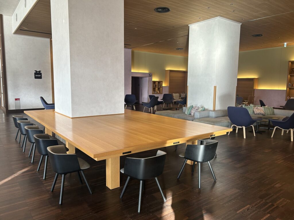 ソファやテーブルが充実していて、チェックイン・アウト前後の時間調整に利用できます。