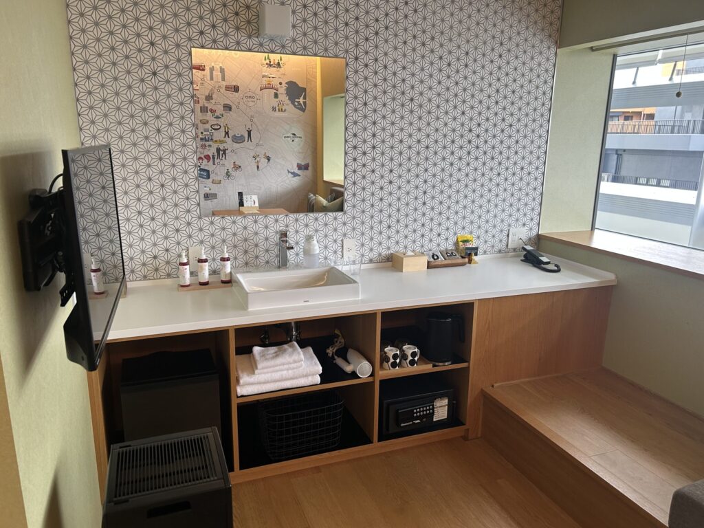 お部屋全体を映すことはできなかったのですが、他のホテルでは見られないような間取りです。