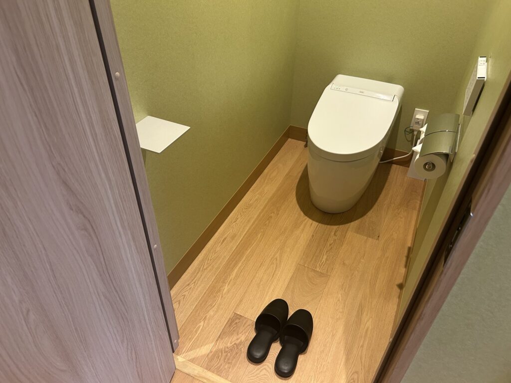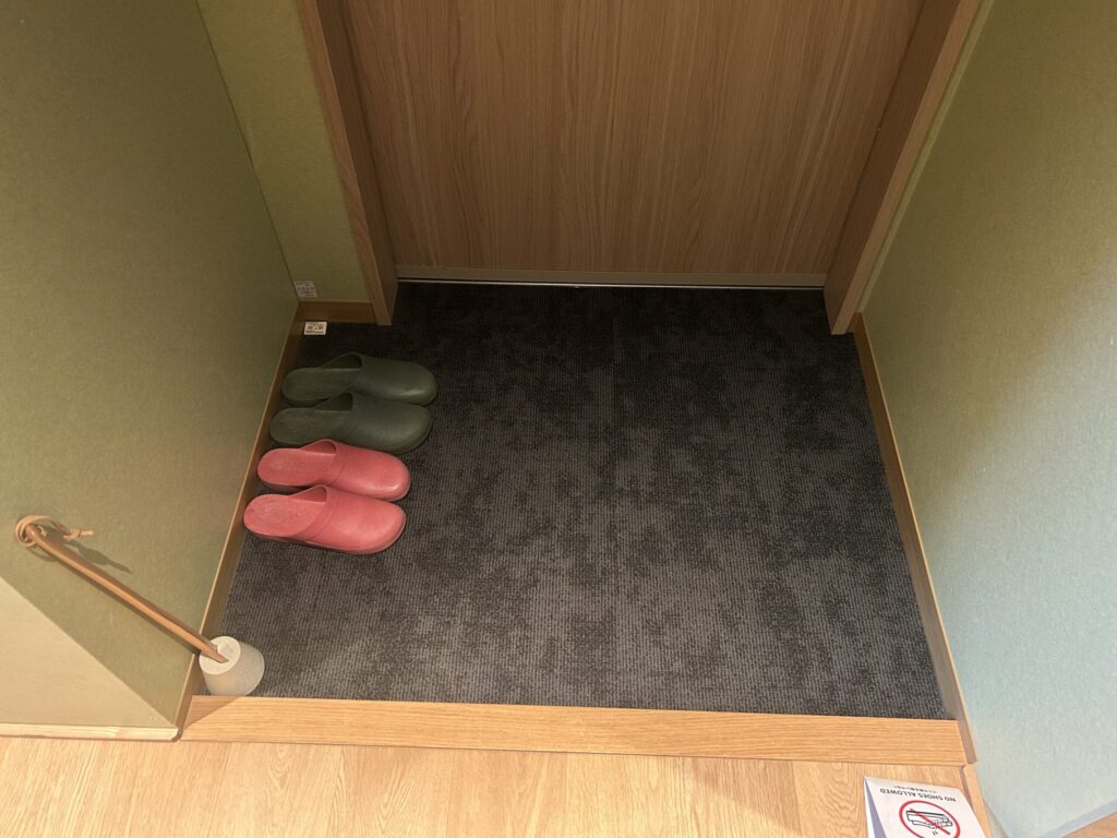 お部屋は靴を脱いで過ごすスタイルで、浴衣とスリッパで館内移動可能です。