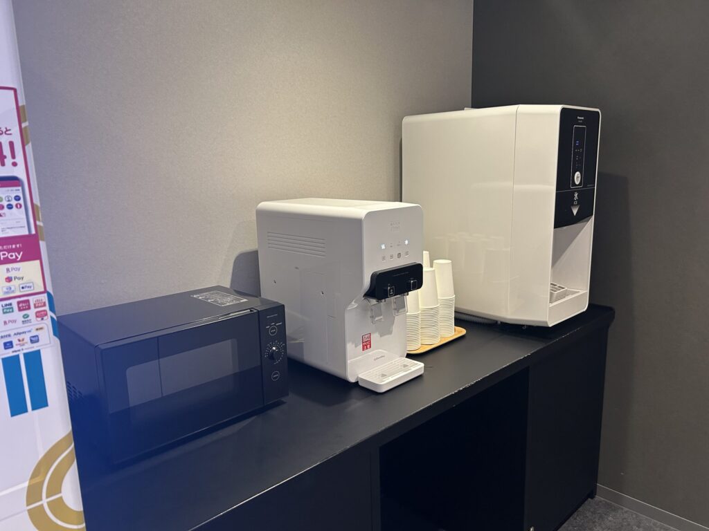 各階に自動販売機、電子レンジ、ウォーターサーバー、製氷機がありました。