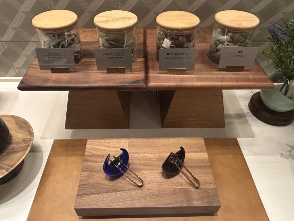 ほうじ茶、コーヒー、パインあめあり。