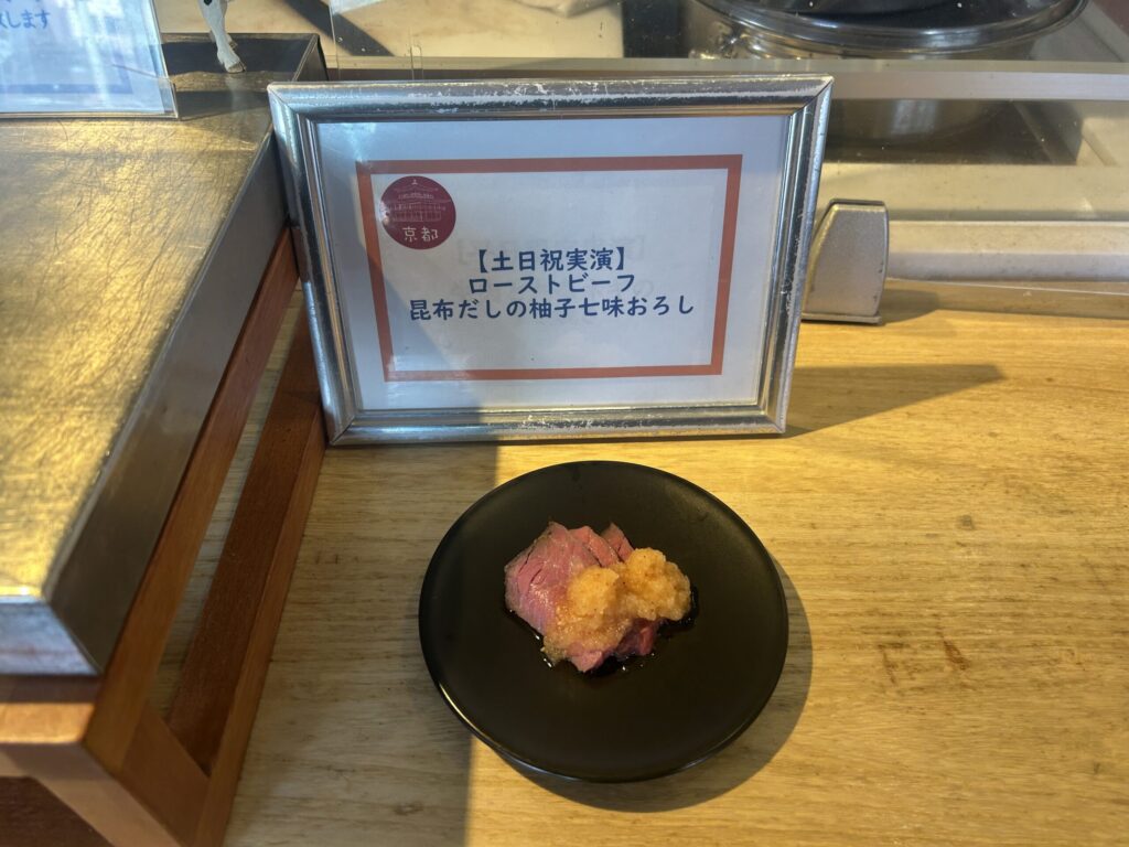 - シェフの実演 ローストビーフ 昆布だし醤油の柚子七味おろし