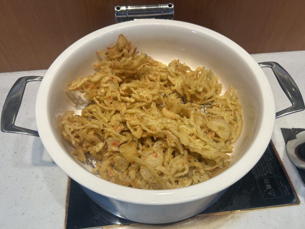 - 茶葉と干し海老のかき揚げ お抹茶のお塩添え