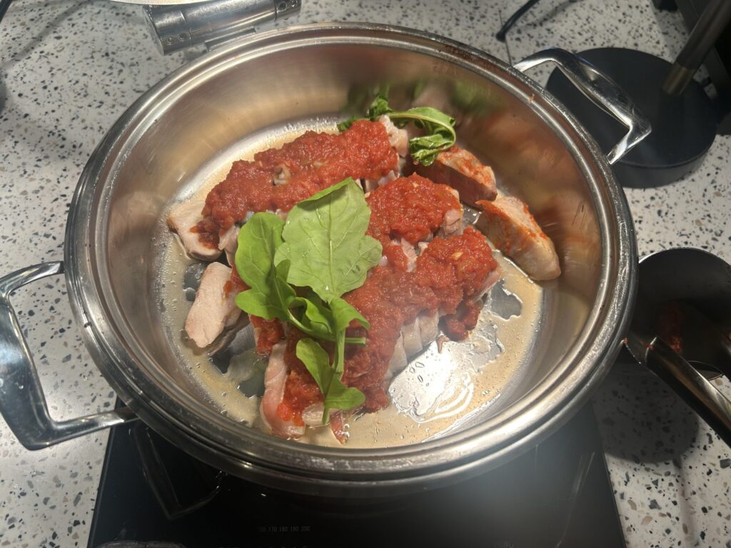 • 森町産ひこま豚のロースト サルティンボッカ仕立て