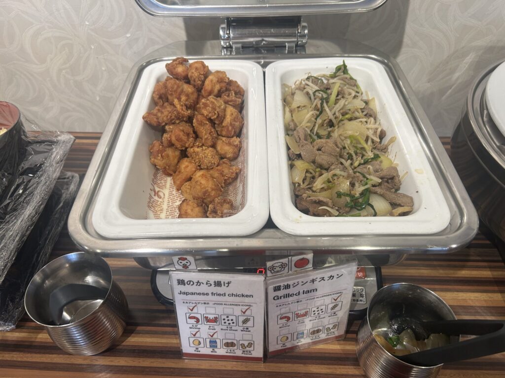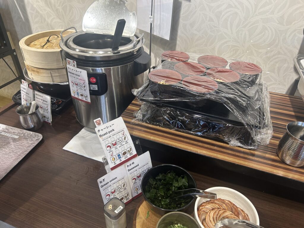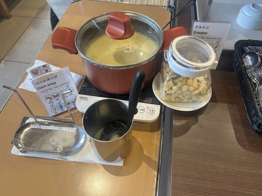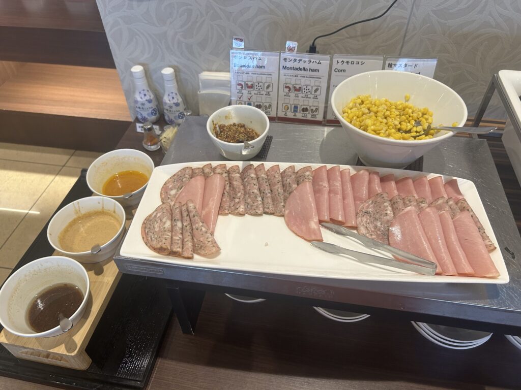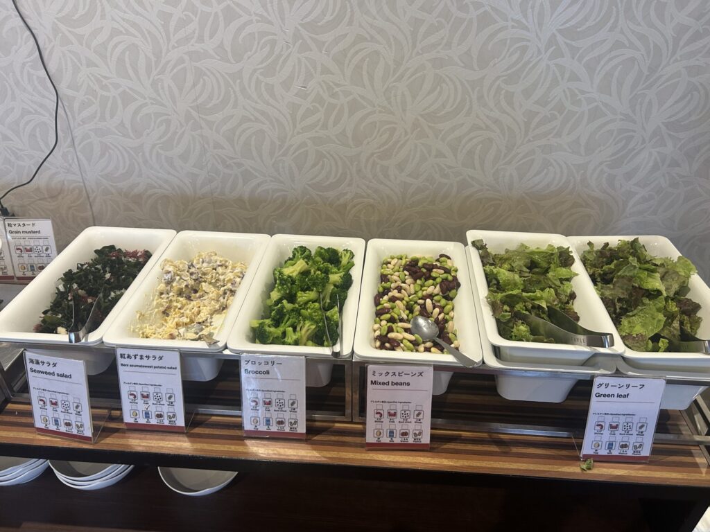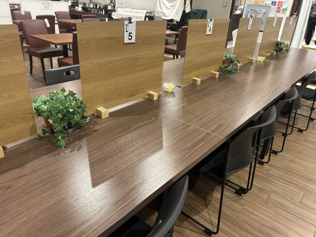 おひとりさまの場合はロングテーブルの相席になるのが少し残念ですが、ビジネスホテルなので許容範囲内です。