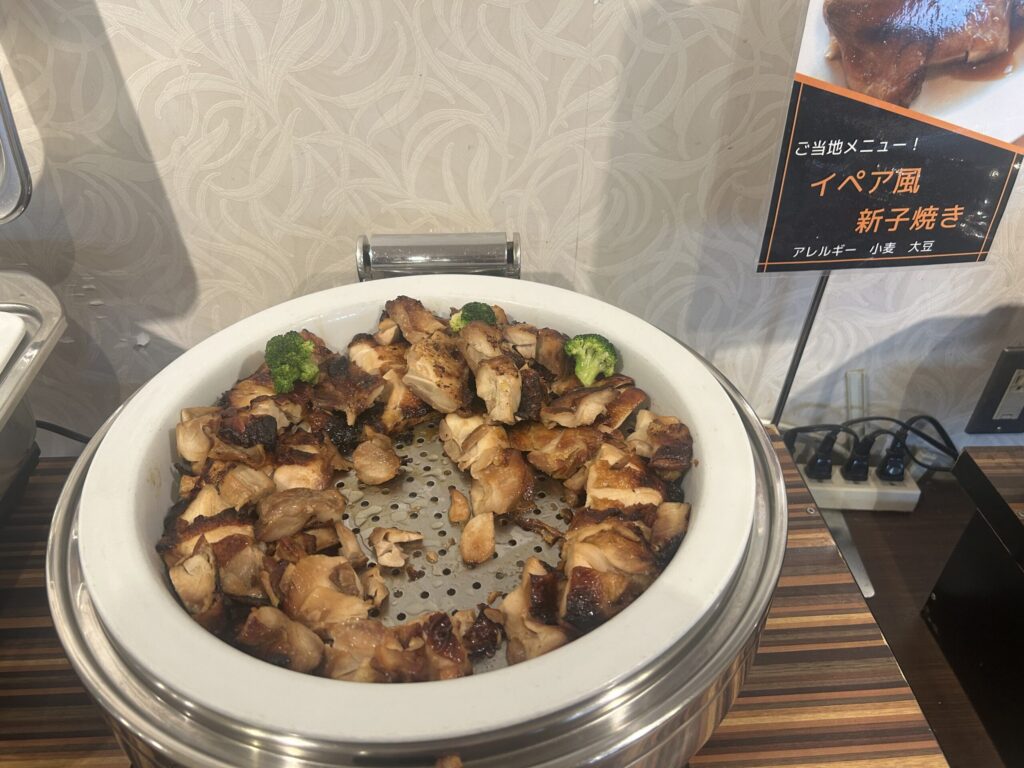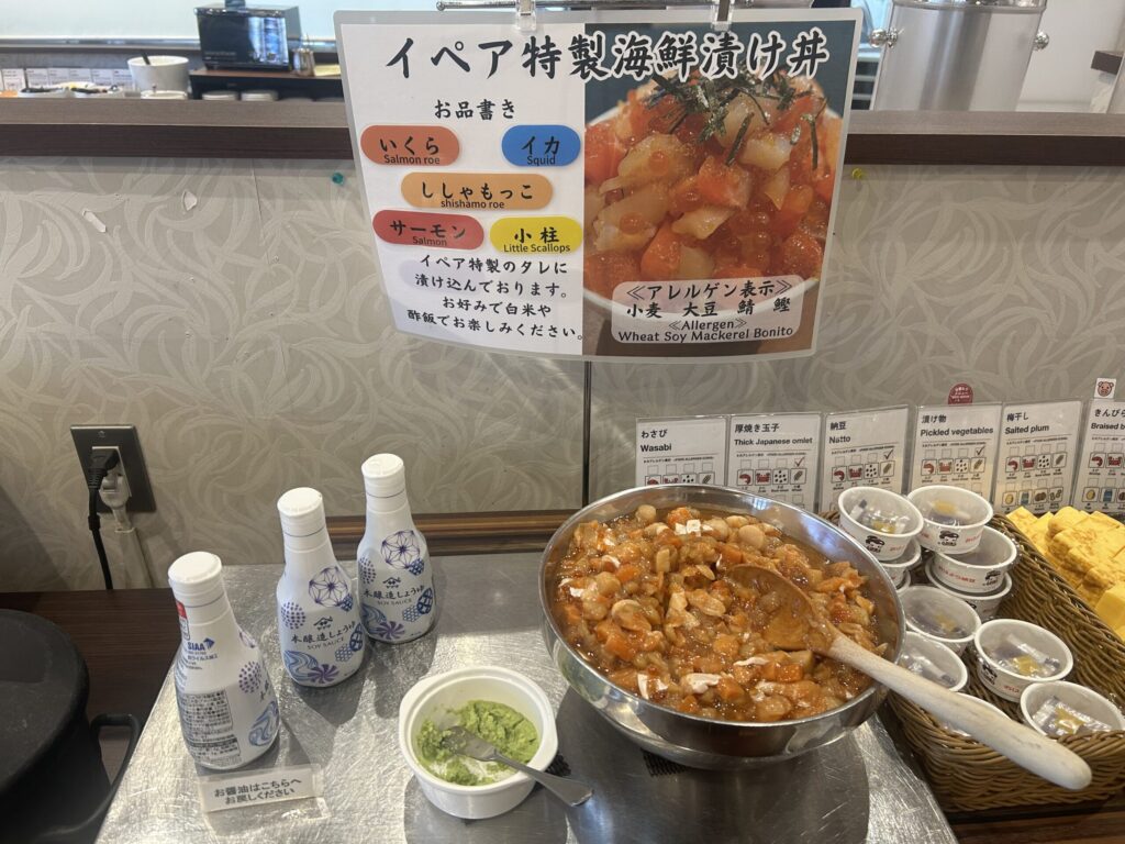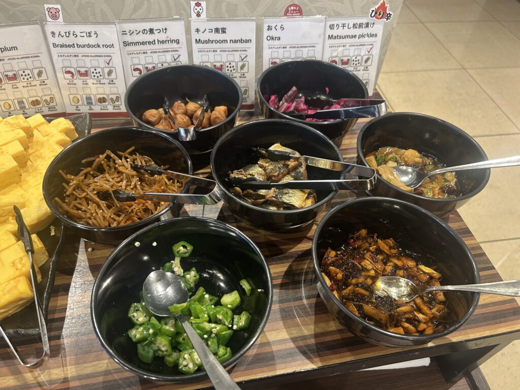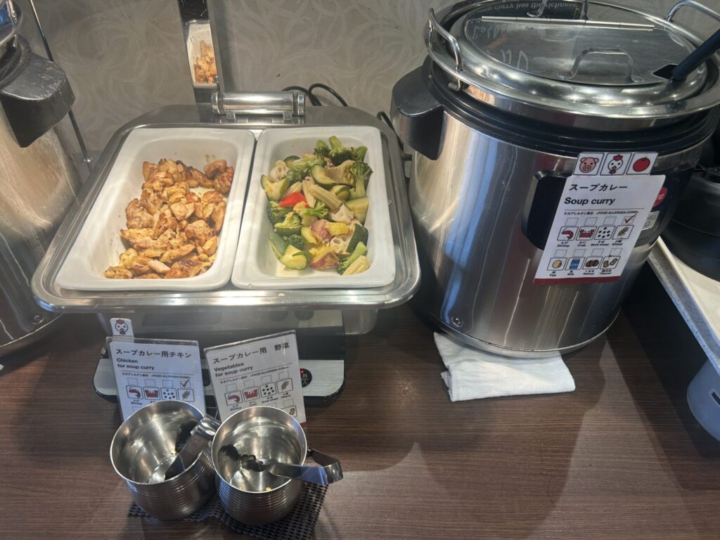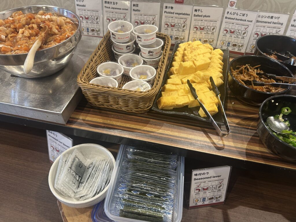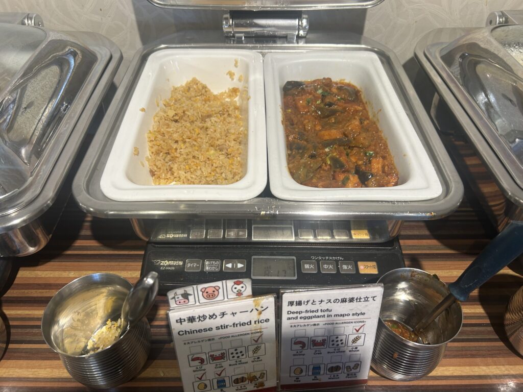 おひとりさまの場合はロングテーブルの相席になるのが少し残念ですが、ビジネスホテルなので許容範囲内です。